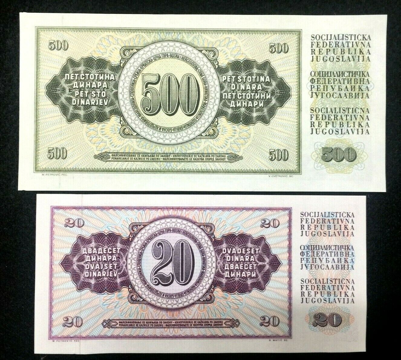 Authentic Yugoslavia 20 and 500 Dinar bills are the most beautiful bills. You will get TWO crisp bills as shown in the picture, these bills will have different serial numbers.
