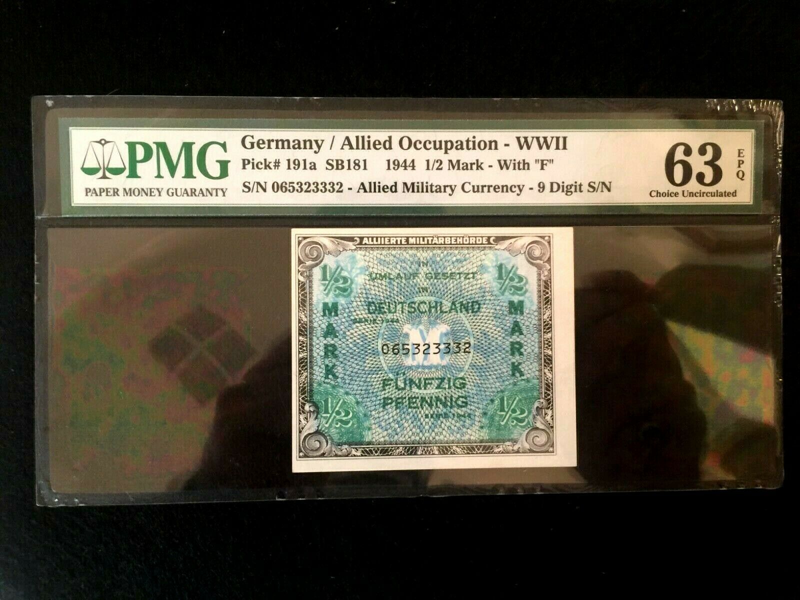 Allied Military Currency- WWII 1944 1/2 Mark - 3 Sequential Bills - PMG Certified Uncirculated